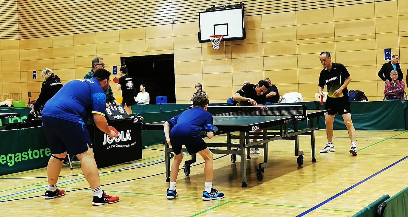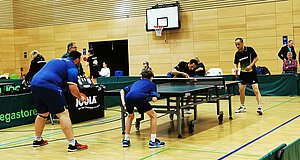 Die verbliebene Stammformation Yannick und Christian sollten auch in dieser Partie zusammen Doppel spielen und gewannen ihre Partie gegen Mitra und Fox überzeugend (3:1). Am Nebentisch schlug dann die große Stunde von Tom, der im Doppel gemeinsam mit Marvin gegen den früheren Bundesligaspieler Nico Stehle und den in Elz sehr gut bekannten Xiaojun Gao antreten durfte. Zwar endete die Partie mit 3:0-Sätzen (11:6, 11:5 und 11:2) für die Biebricher Paarung, dennoch dürfte dies für Tom ein ganz besonderes Erlebnis gewesen sein, was ihm bestimmt noch lange in Erinnrung bleibt. Der Zwischenstand lautete nach den Eröffnungsdoppeln nun 1:1.