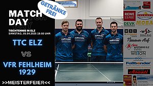 Zum Saisonabschluss unserer Meistermannschaft der Hessenliga lädt der TTC Elz alle Tischtennis-Interessierten in die Turnhalle der Erlenbachschule zur letzten Partie gegen den VfR Fehlheim ein.