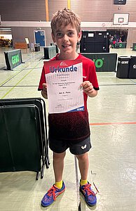 In dieser Altersklasse trat Max in einem 24er-Feld gegen die besten Spieler aus ganz Hessen in seiner Altersklasse an. Seine Gruppe konnte er mit 4:1 Spielen gewinnen und sich so für das Feld der besten 12 Spieler qualifizieren. In der Zwischenrunde konnte Max mit 3:2 Spielen erneut überzeugen. Nach der absolvierten Endrunde hatte sich Max in einer sehr starken Konkurrenz auf den hervorragenden 5. Platz gespielt.