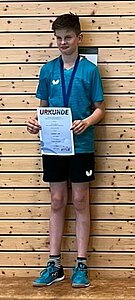 Dabei wusste der 12-jährige Defensivkünstler vollends zu überzeugen und sicherte sich den ersten Platz in der Alterklasse "Jungen 13". Der Elzer Coach Tim Bokler zeigte sich dementsprechend zufrieden: "Lenni hat heute den ganzen Tag über super Tischtennis gespielt und auch in den knappen Situationen einen kühlen Kopf bewahrt. Mich freut es, dass er sich mit dem Titel belohnen konnte."