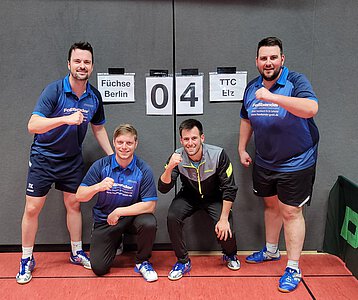 Im zweiten Einzel machte Thomas mit Wolf kurzen Prozess. Immer wieder erreichte er mit seinen präzisen und schnellen Rückhandtopspins Punktgewinne und gewann das Spiel am Ende klar mit 3:0. Mit diesem komfortablen Vorsprung ging danach Jannis gegen Kalka in die Box. Und auch dieser konnte mit einer konzentrierten und taktisch überzeugenden Leistung einen 3:0-Sieg nachlegen. Dass im Anschluss unser Doppel Marvin/Thomas ebenfalls mit 3:1 die Oberhand behielt, war das Sahnehäubchen im gestrigen Viertelfinale. So konnten wir am Ende mit 4:0 gegen einen starken und jederzeit fairen Gegner aus Berlin die Oberhand behalten.