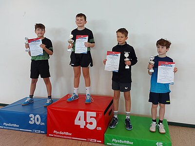 Hier zeigte Philipp Kirsch seine Überlegenheit in der Konkurrenz "AK 1". Mit insgesamt nur drei verlorenen Sätzen holte er sich den Titel vor Fabian Prodan (TTC Staffel). Auch Niklas Voss zeigte eine starke Leistung und belegte am Ende einen tollen 3. Platz. Nicht ganz so rund lief es an diesem Tag für Fabian Franz, der am Ende mit einem erreichten Sieg den 7. Platz belegte.
