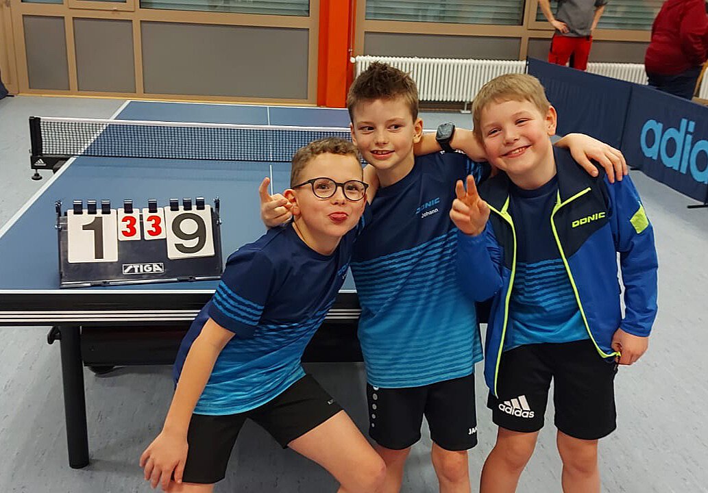 Auch im zweiten Spiel (dann gegen die Jungenmannschaft vom TuS Neesbach), konnten unsere Jungs überzeugen. Nach den Doppeln stand es zunächst 1:1, da Felix und Aeneas mit 3:0-Sätzen gewinnen konnten, Yasin und Johann konnten sich nicht durchsetzen (1:3). Im vorderen Parkkreuz konnte sowohl Felix als auch Johann beide Einzel gewinnen - aber durch zwei Niederlagen im hinteren Parkkreuz von Aeneas und Yasin (beide 2:3) stand es nun zwischenzeitlich 3:3. Johann und Felix wiederholten im Anschluss ihr Kunststück mit zwei Siegen im vorderen Paarkreuz. Durch eine Punkteteilung im hinteren Parkkreuz (Aeneas 3:1 / Yasin 0:3) konnte auch das zweite Spiel in Neesbach mit 6:4 gewinnen werden - eine sehr starke Tagesleistung unserer "Dritten" im Ju15-Bereich.