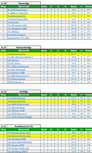 Die letzten Ergebnisse in den Verbandsspielen waren allesamt sehr positiv, so dass unsere Jungs nun erst einmal im vollen Lauf gestoppt werden. Nichtsdestotrotz können sich alle Mannschaften eines sehr guten Tabellenbildes erfreuen.