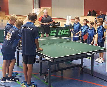 Unter den Augen zahlreicher Eltern, Geschwister und auch Großeltern wollten alle natürlich auch gleich zeigen, was sie am Tischtennistisch bereits gelernt haben. Am Ende jedoch behielten die "13er" die Oberhand und konnten das Spiel mit 8:2 gewinnen. Dabei gewannen Ben Bandyla und Ben Giese das Eröffnungsdoppel gegen Lio Egert und Niklas Voss. Danach folgten einige knappe Spiele und besonders die teilweise knappen Satzergebnisse zeigten, dass alle bereits gut mit Ball und Schläger umgehen können.